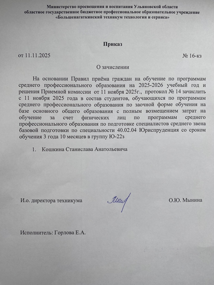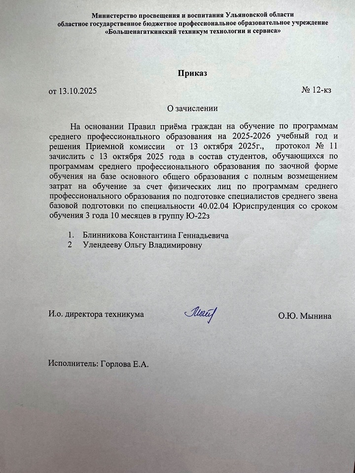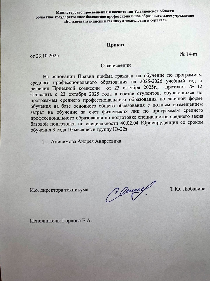 Приказ от 29.08.2025 №25-вк ОВЗ